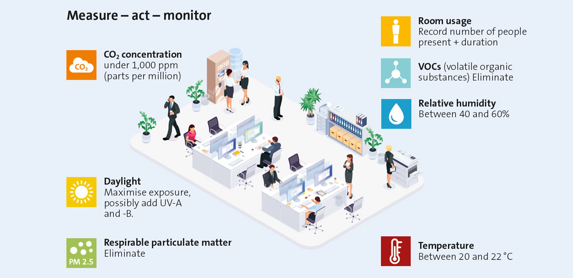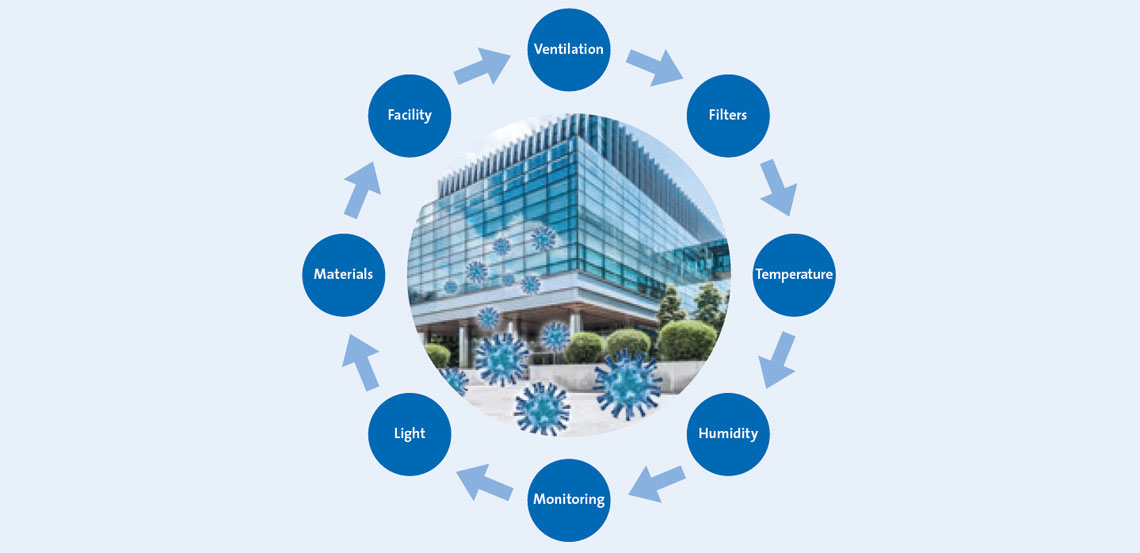 Viral and bacterial transmission in buildings is a quantifiable risk. The white paper introduces the minimum values required, for example across air quality and humidity, and the resulting actions that need to be taken as part of everyday good practice.
